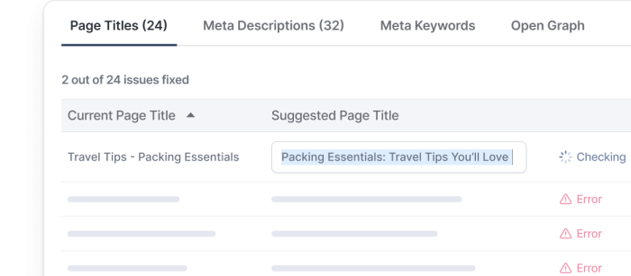 Dynamically optimize page titles for better search visibility and click-through rates.