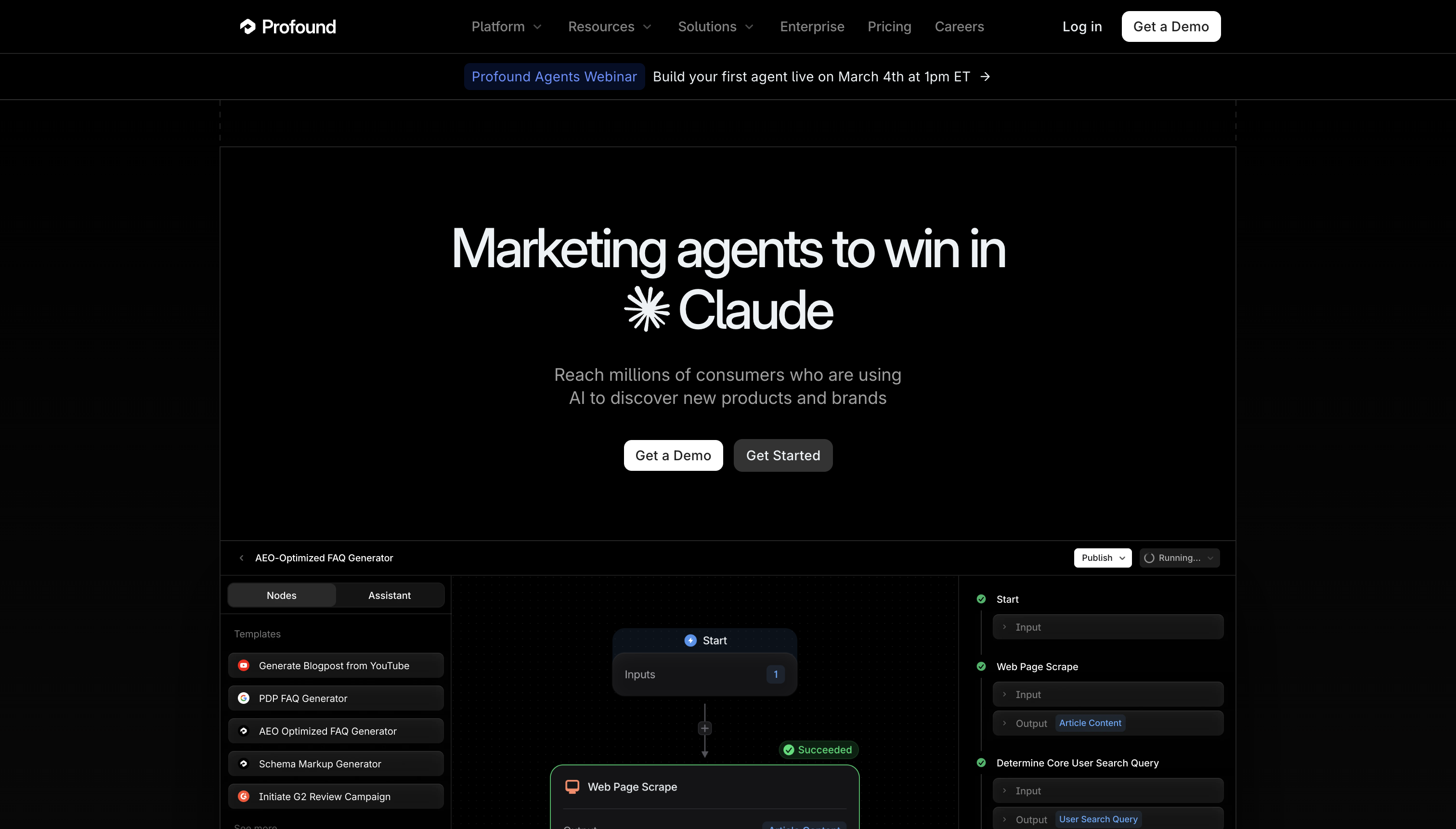 Use Profound if you're at a large enterprise where AI search share directly influences significant revenue, you have a dedicated marketing analytics team, you need SOC 2 compliance and enterprise security integrations, and you want the deepest available AI visibility intelligence — including Conversation Explorer, Agent Analytics, and prompt auto-discovery — with budget to match.
