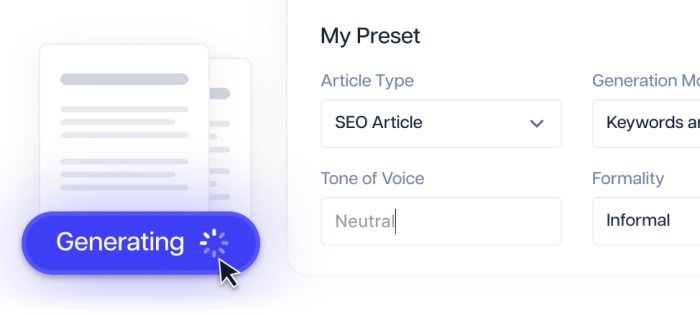 Input information about your business or product, and let Arvow SEO writer do the rest.