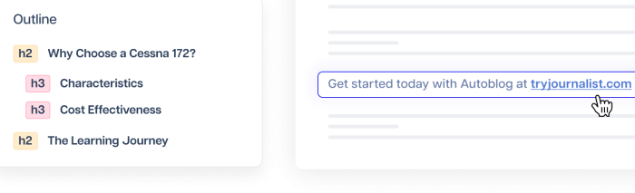 Automatically add external links to generated articles. Our AI analyzes the latest and most relevant souces of information that fit your articles. It will carefully place links according to the context and keywords you want to rank for.