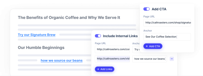 Add links: Suggests you internal/external links to be inserted in the article -