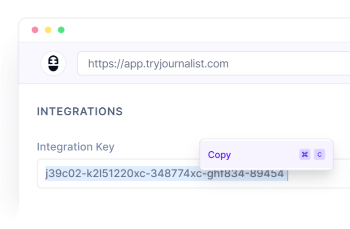 Copy the integration key for your Arvow account