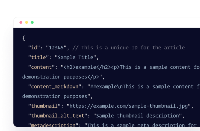 "id": "12345", // This is a unique ID for the article